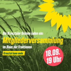 Der Stadtverband Kreuztal von Bündnis 90/Die Grünen lädt alle Mitglieder und Interessierten herzlich zur nächsten Mitgliederversammlung ein.